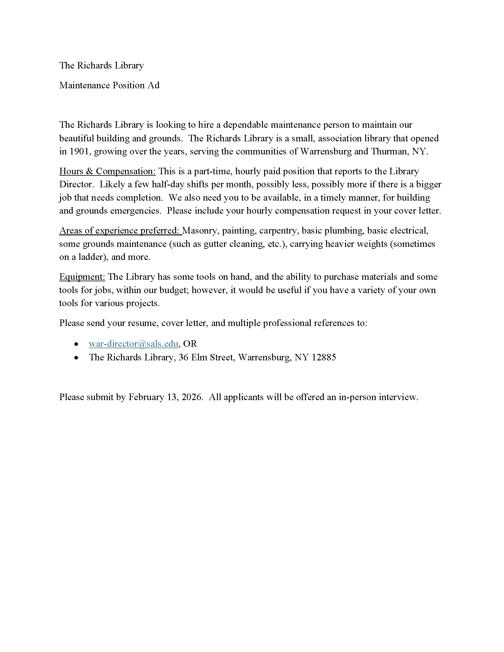 A big thank you to community members of Warrensburg and Thurman for approving the tax levy increase to The Richards Library in the WCSD vote on May 20, 2025. You have our gratitude for making the Library’s welfare a priority. We endeavor to continue expanding resources for use in and out of the Library. Stop on in to use your local library today; we have a lot to offer!